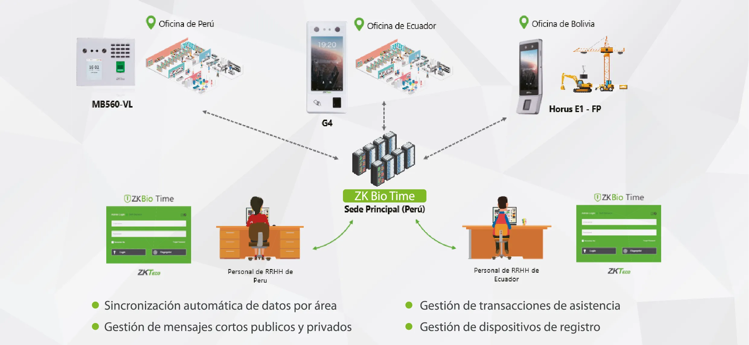 Asu vez, tiene la opción de poder centralizarlo y controlar relojes desde otras ubicaciones como administrarlos desde cualquier parte del mundo.